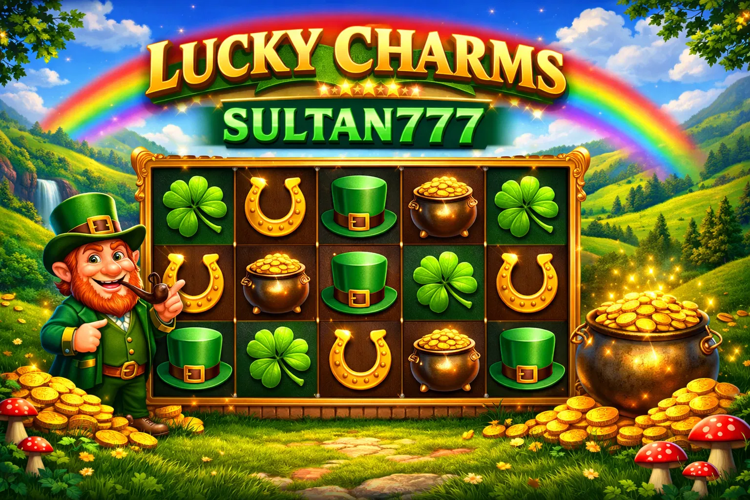 - Simbol ikonik seperti buah-buahan dan angka keberuntungan yang diolah secara digital.